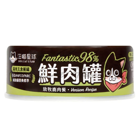 汪喵星球 98% Fantastic 貓咪鮮肉主食罐 - 放牧鹿肉 80g/165g